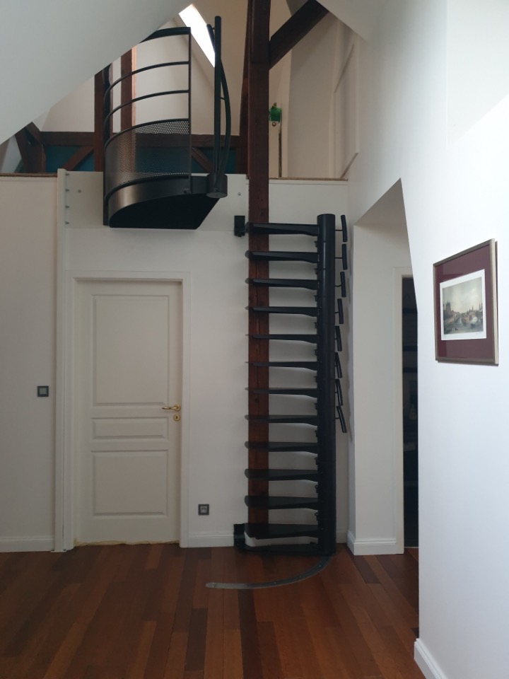 Escalier hélicoïdal repliable pour mezzanine (Metz)
