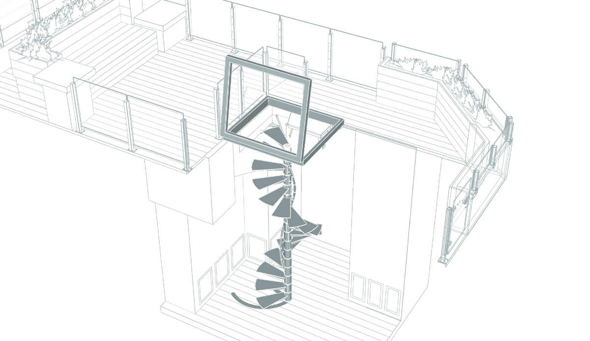 Installation d'un escalier hélicoïdal rétractable pour accéder au rooftop